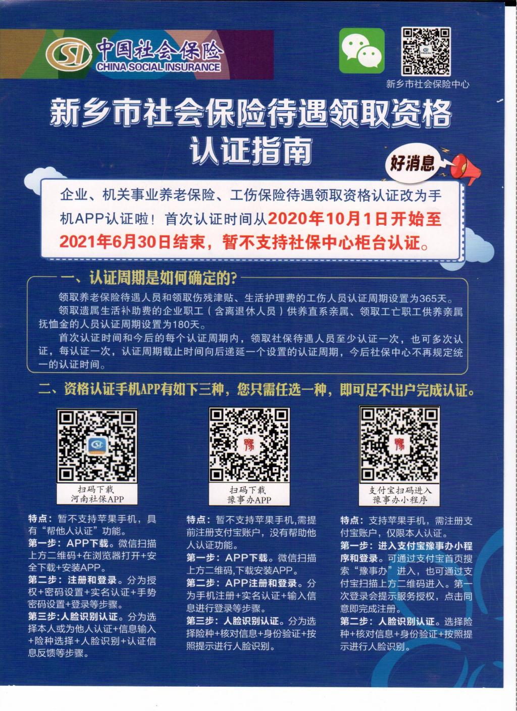 新乡市社会保险待遇领取资格认证指南